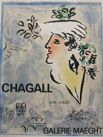 CHAGALL, Marc, (French, 1887- 1985): Exhibition poster for Galerie Maeght, 27 3/4'' x 21 1/2'' with margins, 26 1/4'' x 20 1/2'', Mourlot printer, unframed.