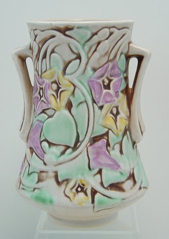 ROSEVILLE POTTERY ''MORNING GLORY'' VASE: Double handle, 6 1/4''h. No chips or cracks.