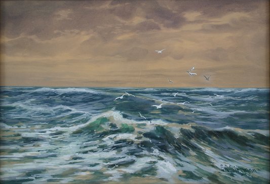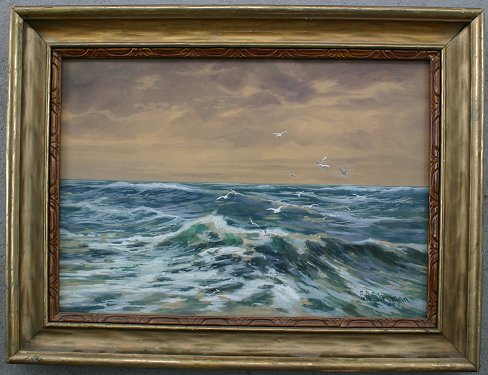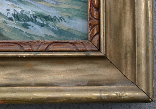 SITZMAN, Edward R., (American, 1874-): Seascape with gulls, W/C, 14'' x 20'', signed lower right, encased in a period gilded frame with wear, 19'' x 25''.