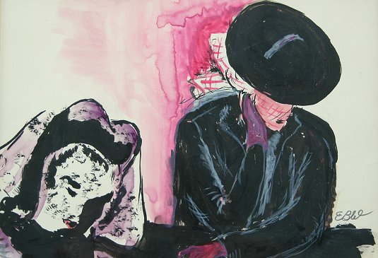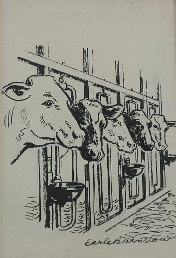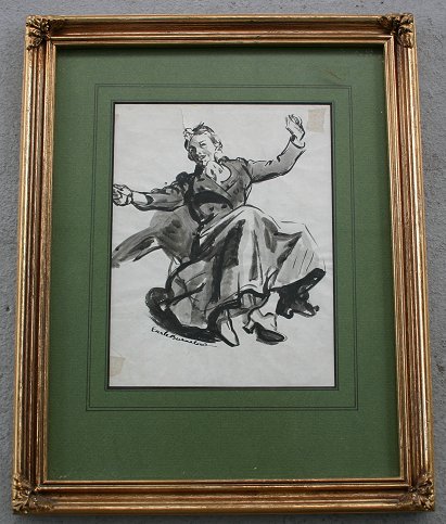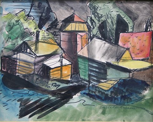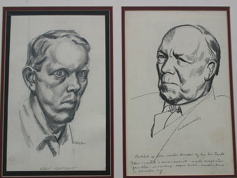 WINSLOW, Earle Bartrom, (American, 1884-1969): Lot of 8 pieces of artwork to include Pencil, Pen and Ink Drawings, Water Colors and Sepia. (1)Pen and Ink torso study, sight size 14 21'' x 14'' framed, 29 1/2'' x 23'', signed lower left in pencil. Condition - Small tear in left corner, crease running through the middle. (2)Framed pair of portraits, both Pencil Drawings, one is self portrait of the artist and the other is portrait of the artist's father, Eben Norton Winslow, who was a master craftsman of furniture and woodworking, each portrait measures approximately 12'' x 8'', self portrait is monogrammed lower right and the portrait of the artist's father is signed lower right and dated '28, frame size is 18'' x 22 1/2''. Condition - Self portrait has a small tear in upper margin and visible creases in drawing paper, the father has some yellowing and minor stains. (3)Modernist water color landscape, 8'' x 10'', signed lower right. (4)Sepia painting of a woman falling out of a chair, 8 1/2'' x 6 3/4 si