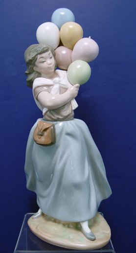 LLADRO ''BALLOON SELLER'' FIGURE: Retired in 1996, 10 1/5''h, #5141. No chips or cracks.