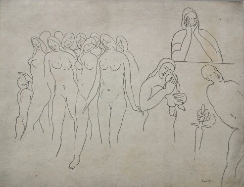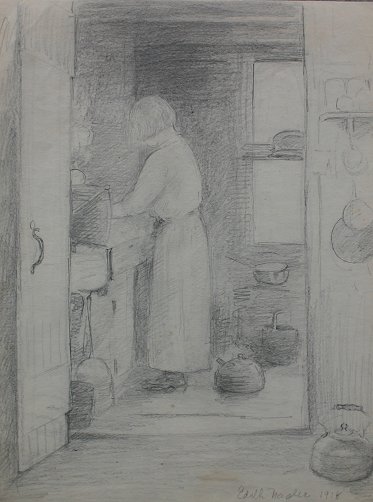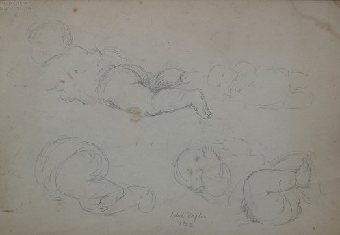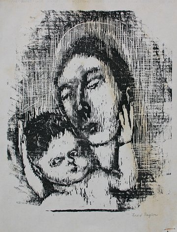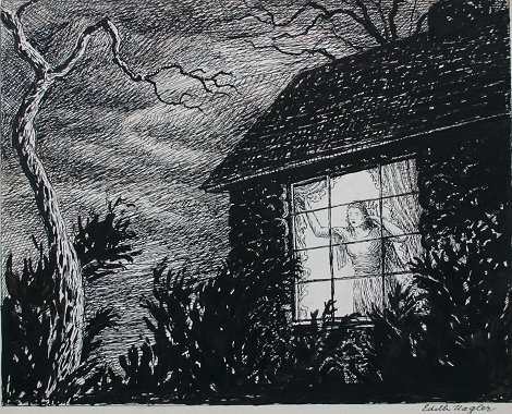 EDITH AND FRED NAGLER ART LOT TO INCLUDE 3 PIECES BY FRED & 11 BY EDITH: Various mediums to include Pencil, Pen and Ink, W/C, Woodblock and DryPoint Print. Sold lot as is.