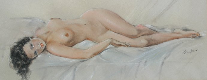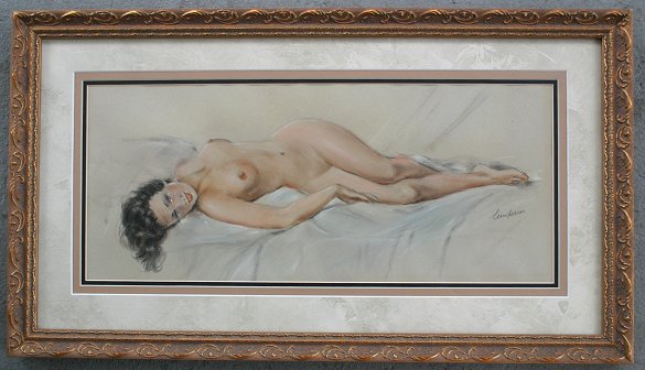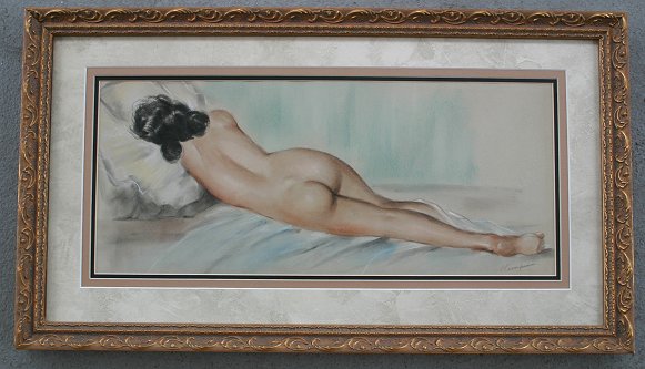 PAIR OF 1930'S ERA ATTRACTIVE ILLUSTRATION QUALITY FEMALE NUDES PASTELS: Sight size 17 1/2'' x 18 1/4'', illegibly signed lower right, professionally matted and framed, 13 3/4'' x 24 1/4''.
