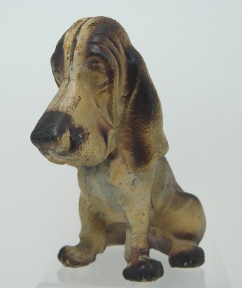 OLD CAST IRON BLOODHOUND DOORSTOP: Approx. 7''h. x 4'' x 7''. Minor paint loss.