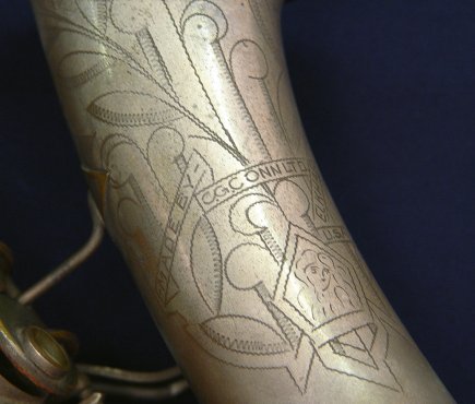CG CONN SAXAPHONE KBOWN AS THE NAKED LADY: In the case, could use a good polish, 25''l.