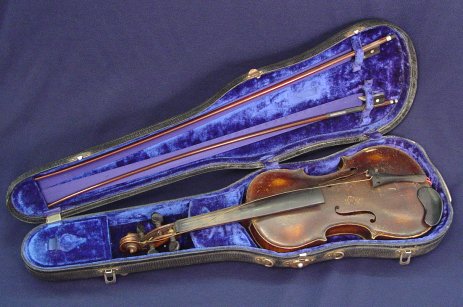CZECH STAINER VIOLIN: In worn condition, two bows, in case.