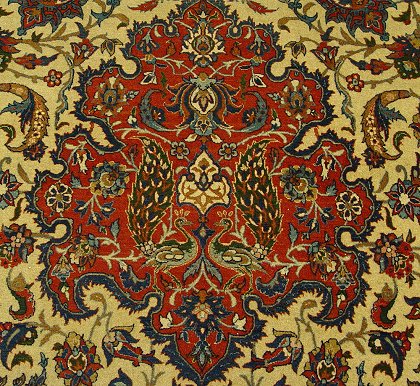 PERSIAN KASHAN CARPET BLUE ON BEIGE