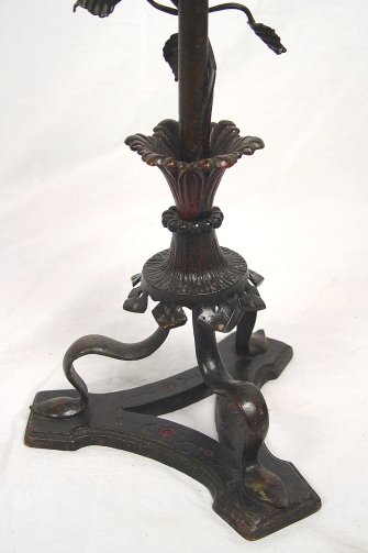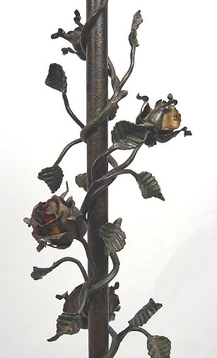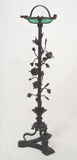 ADDISON MIZNER WROUGHT IRON SMOKE STAND: Trailing roses on this stand Spanish influence. Tint of red and black original finish. Unsigned but marked 4 18 RI. From the estate of a gentleman that worked with Mizner.