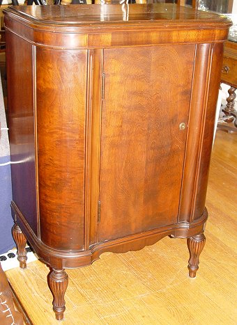 MAHOGANY MUSIC CABINET: Ca. 1920's. Featuring rounded stile, turned legs, single locking drawer. Approx. 38'h. x 25''. Est. $200/300**