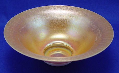 CALCITE AND GOLD AURENE ART GLASS BOWL: Attributed to Steuben, unsigned. Gold lined, calcite bowl, no chips or cracks, 3 1/2''h. 10 1/2'' dia.