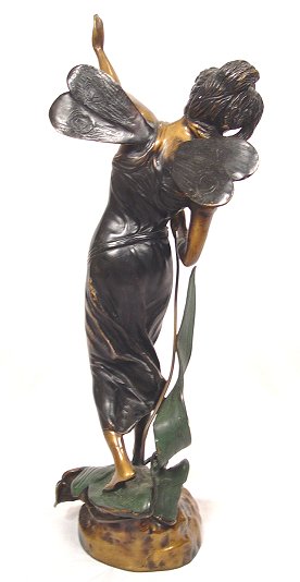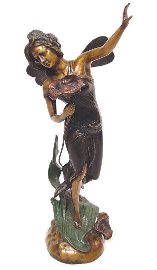 CONTEMPORARY BRONZE SCULPTURE OF WINGED FAIRY: Large female fairy amongst the flowers, 23 1/2''h.