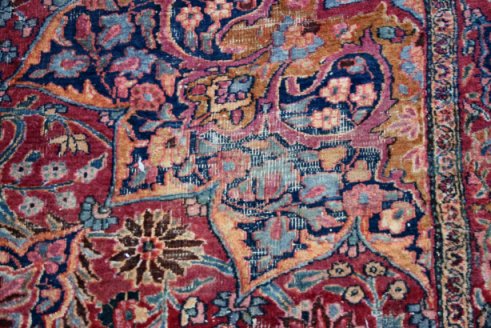 SEMI-ANTIQUE MASHED ORIENTAL CARPET: Approx. 11'5'' x 19', some wear noted, please call for condition.