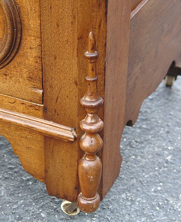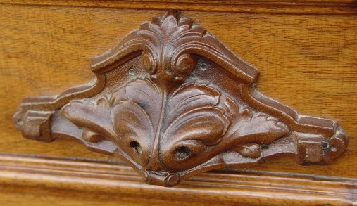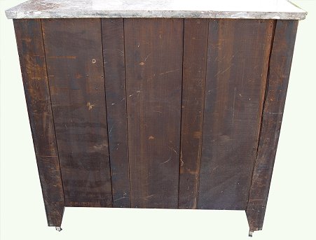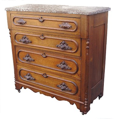 VICTORIAN MARBLE TOP FOUR DRAWER CHEST: Brown marble top, carved wooden pulls, molded drawer fronts. 19'' x 41'' x 41''h