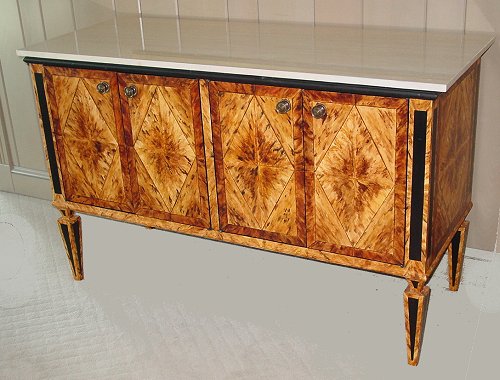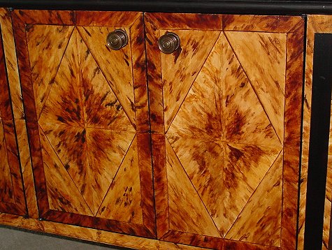 NEOCLASSICAL STYLE SERVER BY ANNETTE GLOOMIS: Faux finish in a wood grain and ebony type finish. Marble top over cabinet base. 37''h., x 57'' x 23 3/4''.