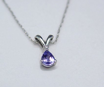 DAINTY & DELICATE TANZANITE PENDANT: 30 point pear shaped tanzanite with lovely color, set in platinum with a tiny diamond accent, on an 18'' chain. Retail $674.00 Est. $160/180**