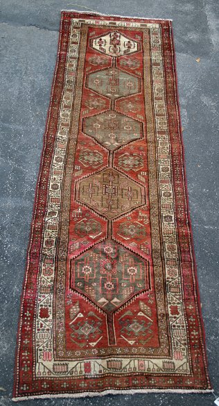 HAND KNOTTED HAMEDAN RUNNER: Approx. 3'8'' x 12'5'', earth tones, hand knotted in Iran.