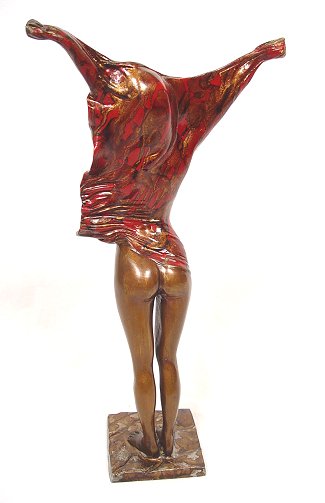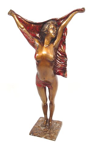 CONTEMPORARY POLYCHROME FIGURE OF FEMALE NUDE WITH RED TOWEL, 19''h.