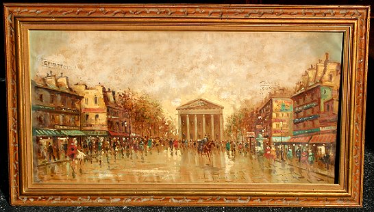 DEVITY, Antonio, (Italian, 20th C.): ''Place de Madeline'', O/C, 24'' x 48'', signed lower right, also stamped Devity Studio verso, period carved frame. Condition - Needs cleaning.