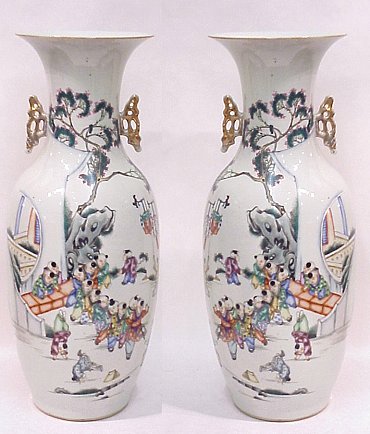 PAIR OF CELADON VASES, CA 1900, 23 1/4''h.