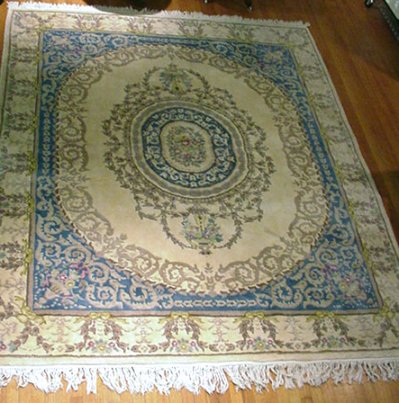 HAND WOVEN ALL WOOL PASTEL BLUE SCULPTED CARPET: Labeled ''Chindia'', approx. 8' X 10'.