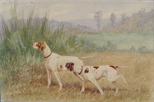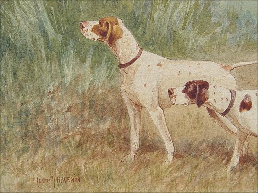 THEVENIN, Henri, (French, 20th C): Pointers in a landscape, W/C, 6'' x 9'', signed lower left, unframed.