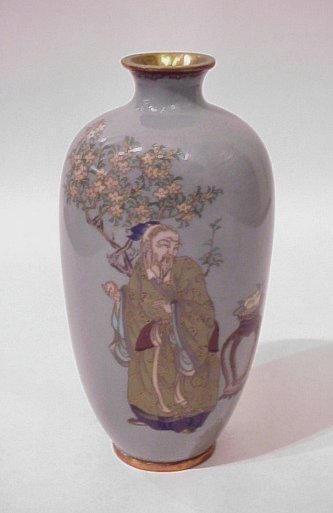 CLOISONNE VASE W/WISE MAN: 7 1/2''h