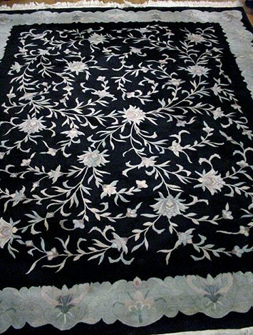 INDO CHINESE ORIENTAL CARPET: Black ground with sculpted floral design. 116'' x 94''