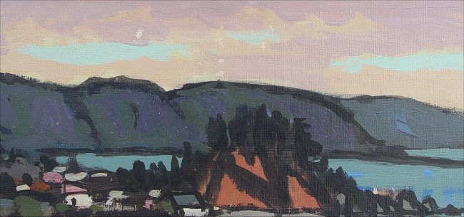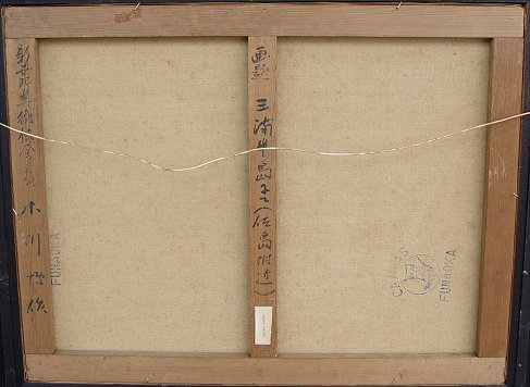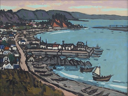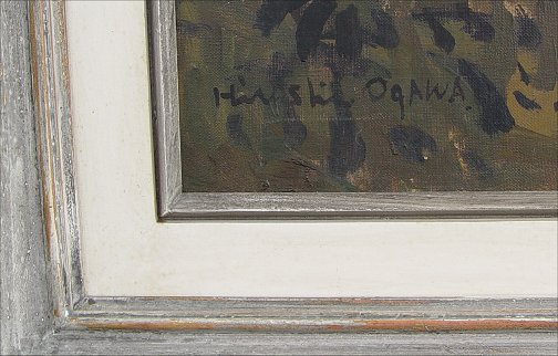 OGAWA, Hiroshi, (Japanese, 20th C): Harbor scene, 19 3/4'' x 25 3/4'', signed lower left, Japanese script on stretcher verso, encased in original gilded molding with minor wear, overall 28 1/2'' x 34''. Condition - Some paint loss in the sky but in overall good condition.