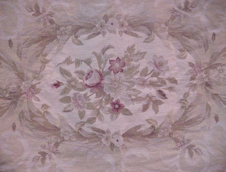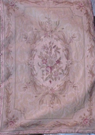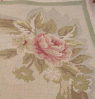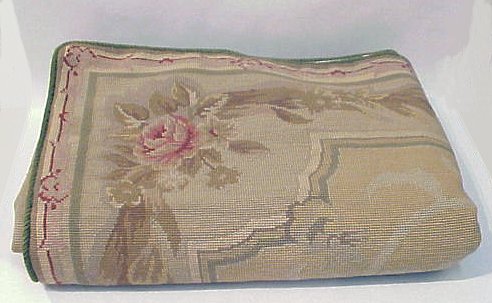 FRENCH NEEDLEPOINT AUBUSSON TAPESTRY: Approx. 4' x 5'11''. No stains or tears. Floral backing.