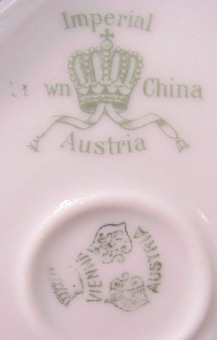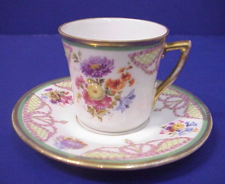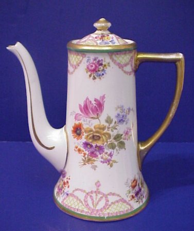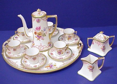 AUSTRIAN PORCELAIN CHOCOLATE SET: Some wear to the gold.