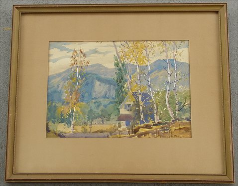 PEYTON, Alfred Conway, (American, 1875-1936): Country landscape with farm house, W/C, 11'' x 16'', signed lower right, encased in frame period to piece, some wear, overall 20'' x 25''.