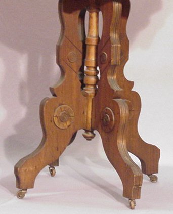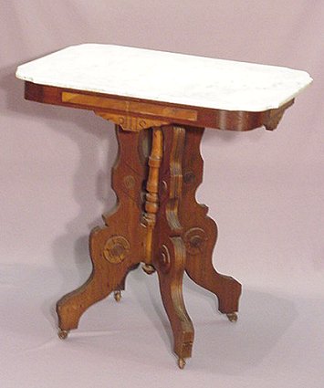 EASTLAKE VICTORIAN MARBLE TOP TABLE: Scalloped white marble on shaped legs. 29 1/2''h, x 28 1/2'' x 20 3/8''.