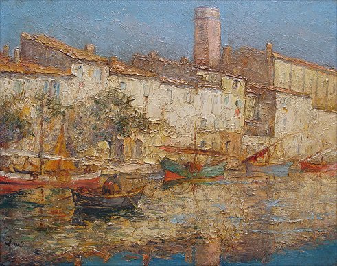 EXCEPTIONAL 19TH C O/WOOD PANEL ''CANAL ST. SEBASTIEN, MARTIGUES'': 10 1/2'' x 13 1/2'', unframed, signed lower left Liani? possibly Ferdinand, titled in pencil verso.