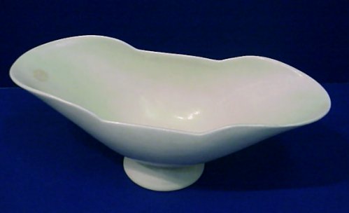 ROOKWOOD POTTERY CONSOLE BOWL: Shape 6826, dated 1946, matt white glaze. 12 3/4''l. No chips or cracks.
