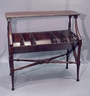 MAHOGANY TROUGH STYLE MAGAZINE RACK: 34''h 34''w x 15''