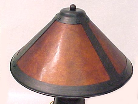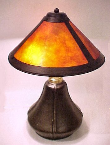SIGNED BRADLEY & HUBBARD ARTS & CRAFTS TABLE LAMP: Vintage patinated metal base with a later mica shade. 21''h.