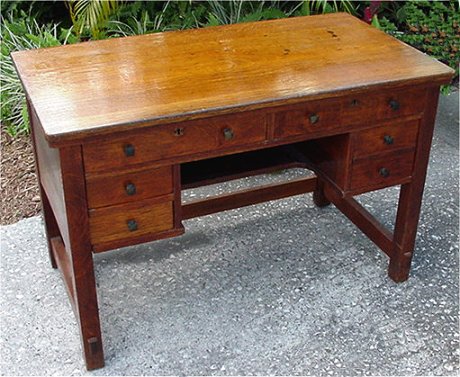 SIGNED LIMBERT ARTS & CRAFTS OAK DESK: 6 drawer kneehole desk with original pulls. Later finish. 30''h. x 45'' x 24''.