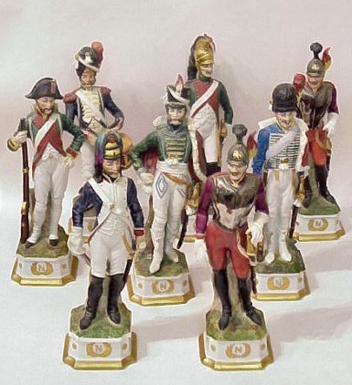 EIGHT DI PIETRO ITALIAN PORCELAIN SOLDIERS: Elaborately costumed, hand painted Italian ceramic figures. 12''h. Sold as set.