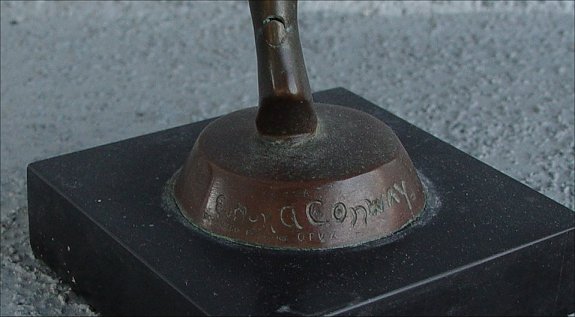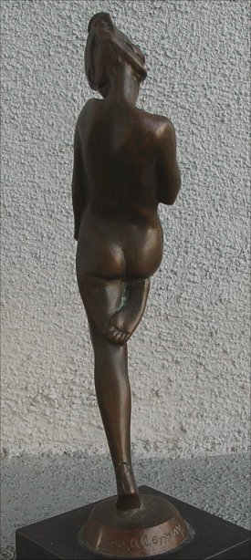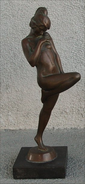 CONWAY, Evelyn Avord, (American, 20th C): Nude Dancer, Bronze, 10''h., rests on polished black stone plinth, signature incised in base, marked Gorham Co Founders OFVZ.