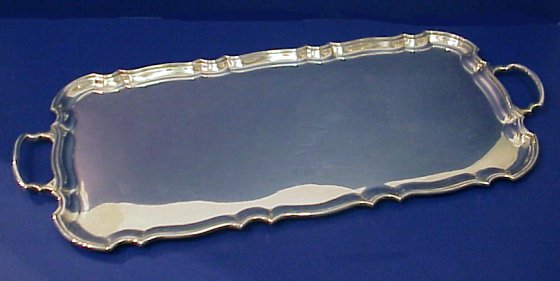 ENGLISH STERLING SILVER TRAY: Hallmarks indicate third quarter 20th century, Chippendale style pattern, 59 ozs. 23 1/4'' x 10 1/4''.