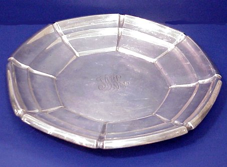 GORHAM STERLING SALVER: Octagonal in shape, #A13835, monogrammed, surface scratching. 13 1/4'' dia. Approx. 31.73 oz.