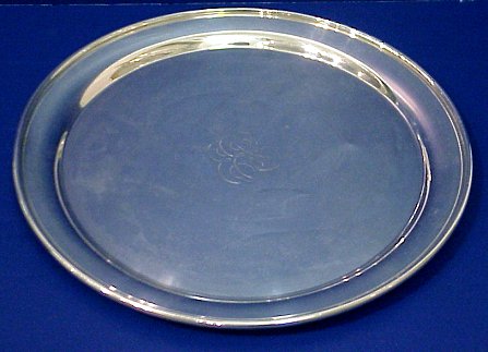 GORHAM STERLING TRAY: 12'' dia, monogrammed #620. Approx. 18.32 oz.