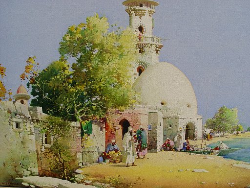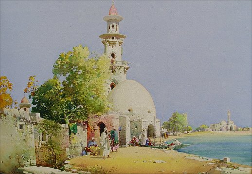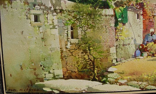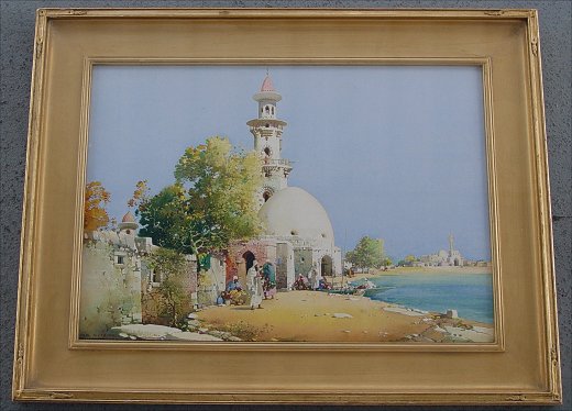 LEAVER, Noel Harry, (British, 1889-1951): ''On Tunisian Shores'', W/C on Whatman board, 14 1/4'' x 20 1/4'', signed lower left, titled verso, encased in gilded and carved period impressionist frame, 20'' x 26'' overall, some wear to corners.