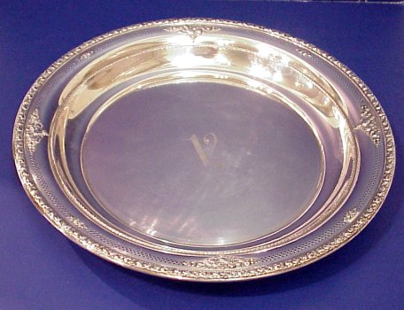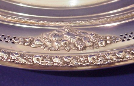 LARGE WALLACE STERLING LOW BOWL: Reticulated and repousse border, 13 3/4'' dia. Monogrammed V. Wallace Sterling 3940-9. Approx. 20.82 oz.