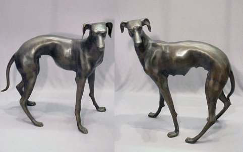CONTEMPORARY LIFE SIZE BRONZE GREYHOUNDS: Male and female, approx. 32''h. x 30''l., unsigned. Approx 20# each.