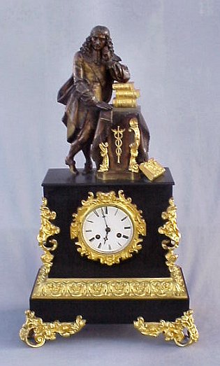 FRENCH MARBLE & BRONZE FIGURAL CLOCK: Works signed Pons, France. 24 ½''h