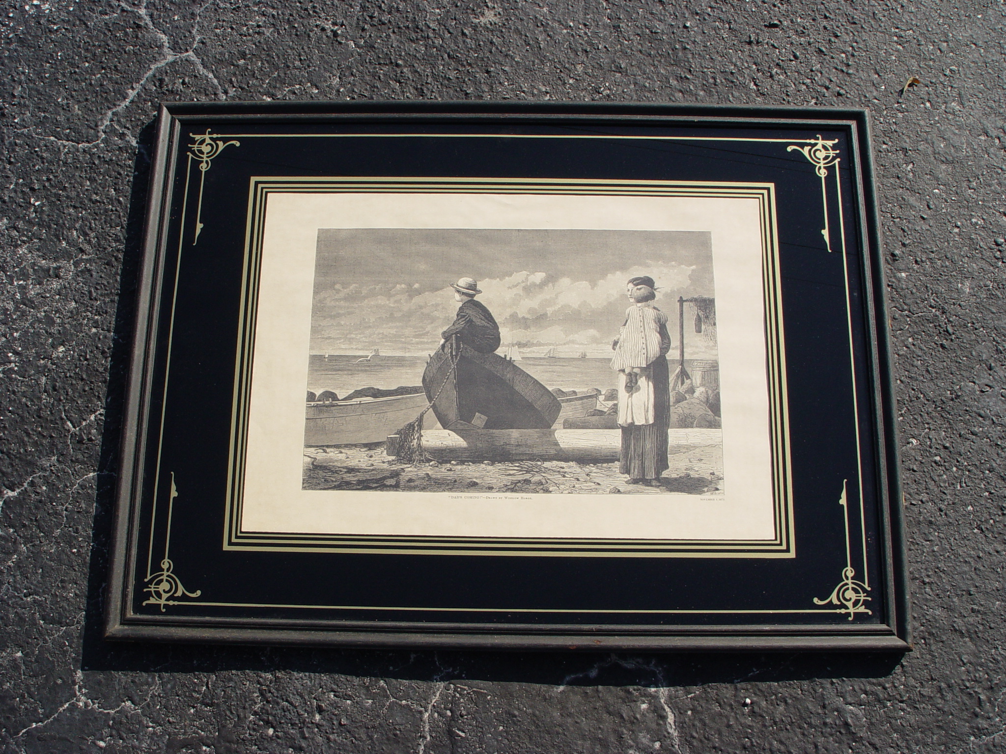 HOMER, Winslow, (American, 1836-1910): ''Dad's Coming'', Wood Engraving from Harper's Weekly, published 1873, sight size 15'' x 21'', titled along lower margin, dated 1873, encased in original period frame with reverse painted glass border, overall 24'' x 32''.