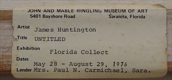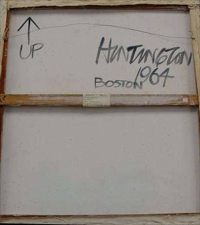 HUNTINGTON, James L., (American, 20th C): Untitled Composition, O/C, 35'' x 32'', signed verso, dated 64, marked Boston, bears the John and Mable Ringling Museum of Art exhibition label verso, unframed. Condition - Minor scuffs.
