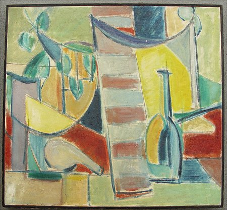 JUNKIN, Marion, (American, 1905-1977): Cubist Still Life, O/C, 24'' x 26'', signed on stretcher and canvas verso, encased in original frame, 24 3/4'' x 26 1/2''. Junkin exhibited at the PAFA, Art Institute of Chicago, Butler Art Institute, Archman Academy of Fine Arts. Studied at the Art Students League with Luks, Professor of Fine Arts at the Richmond School of Arts Vanderbilt University and the Washington & Lee University.