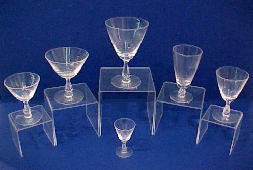 ''PINE'' PATTERN FOSTORIA CRYSTAL STEMWARE: 48 pieces of Fostoria crystal to include 8 iced tea, 12 wine, 8 juice, 8 water, 6 cocktail, and 6 cordials.